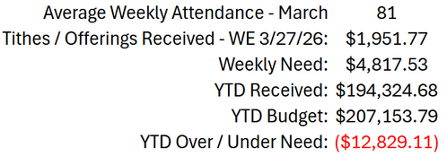 Looking forward to worshiping with you all Sunday at 10:00 AM,